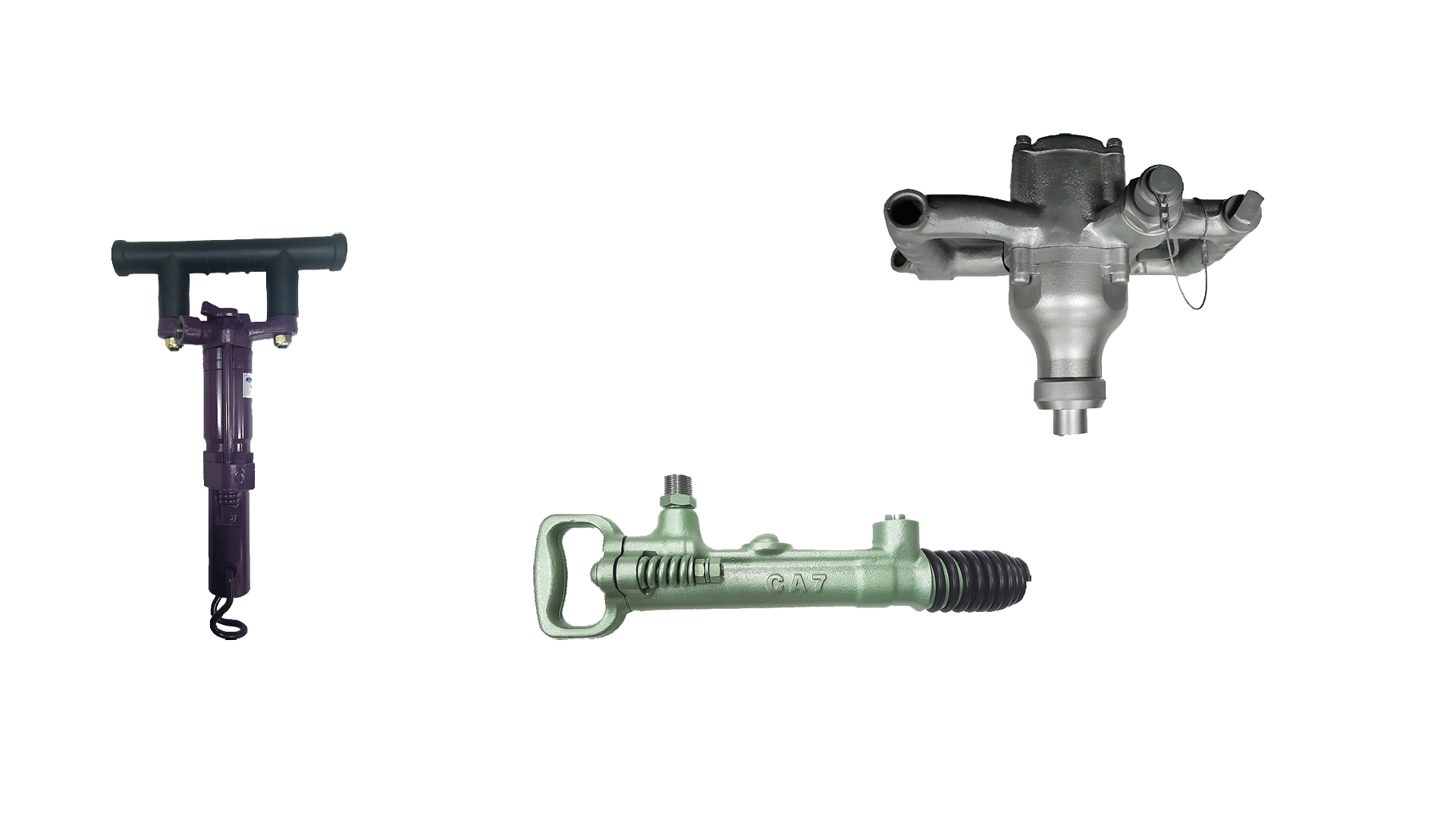 Small-sized Hand-held Rock Drills are suitable for downward drilling and it is widely used for breaking rocks in quarries or for road constructions and other civil engineering work.